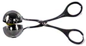 Scoop up cement and close jaws to mould ping pong ball size cement balls. Tap jaws to loosen balls and turn out onto plastic sheet to dry.