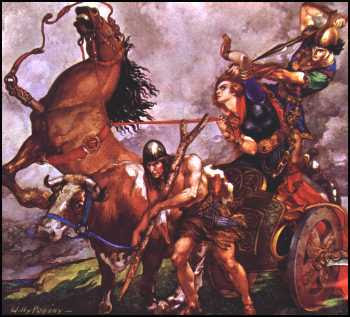 I also remember seeing an illustration of Cu Chulainn using a sling with a netted pouch, but I think the drawing was modern, so there’s not telling if its accurate or not.